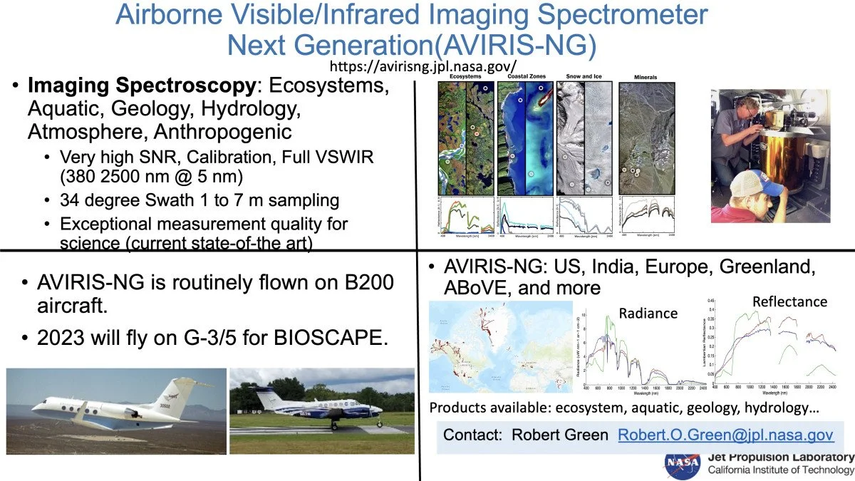 A key focus is the use of narrow-band airborne hyperspectral data collected by AVIRIS-NG and PRISM during the BIOSCape field campaign. These data will allow researchers to isolate phytoplankton-specific reflectance signals from those caused by sediments, dissolved organic matter, and other seawater constituents. Close coordination with the BIOSCape team ensures optimal flight planning to minimize atmospheric interference such as cloud cover, aerosols, haze, and sun glint.