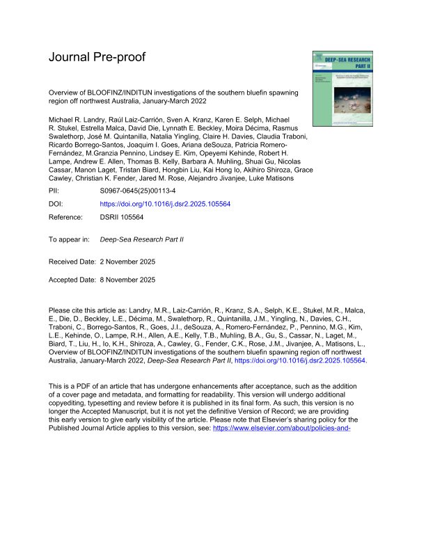 Overview of BLOOFINZ/INDITUN investigations of the southern bluefin spawning region off northwest Australia, January-March 2022 (2025)