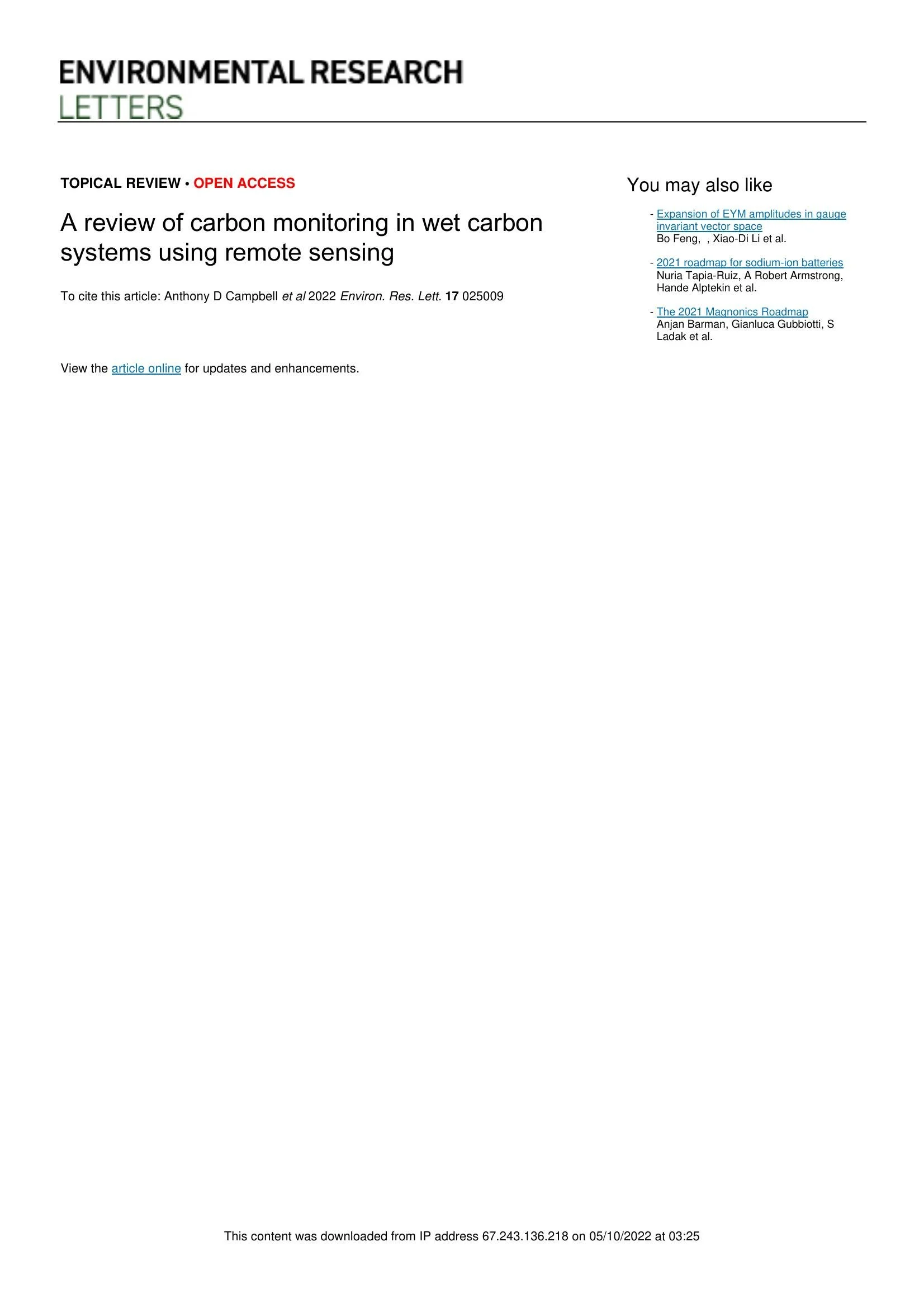 Remote Sensing of Environment | PDFA review of carbon monitoring in wet carbon systems using remote sensing (2022)