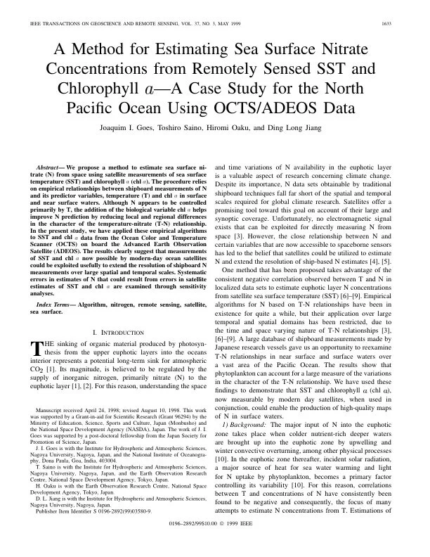Marine Phytoplankton | PDFExploiting MODIS Data for Estimating Sea Surface Nitrate From Space (2004)