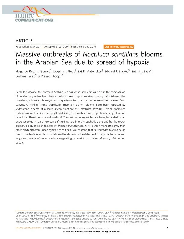 Nature Communications | PDFLocating Noctiluca miliaris in the Arabian Sea: An optical proxy approach (2014)