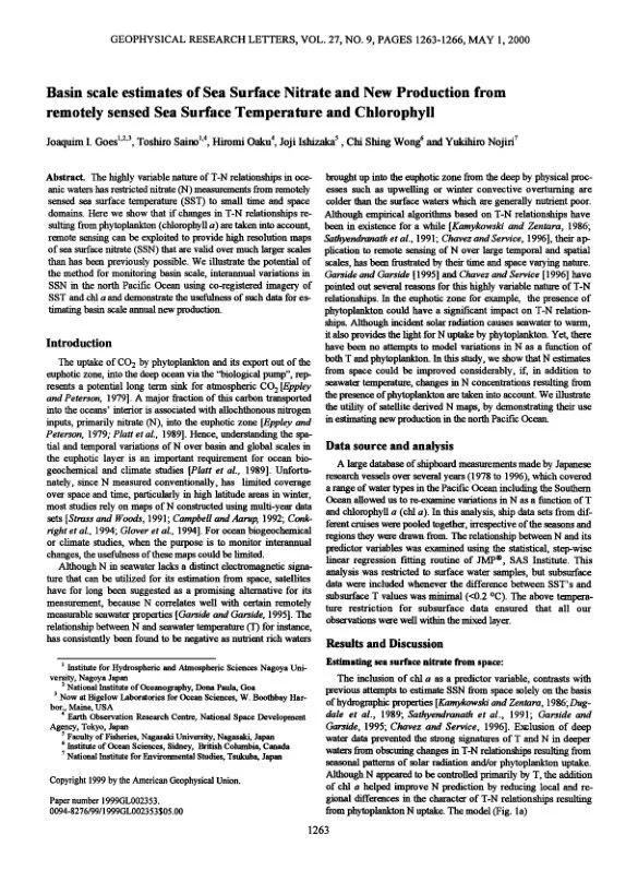 Science | PDFBasin scale estimates of Sea Surface Nitrate and New Production from remotely sensed Sea Surface Temperature and Chlorophyll (2000)