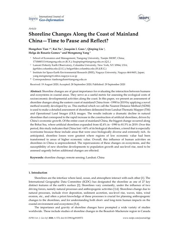 Progress in Oceanography | PDFShoreline Changes Along the Coast of Mainland China—Time to Pause and Reflect? (2020)