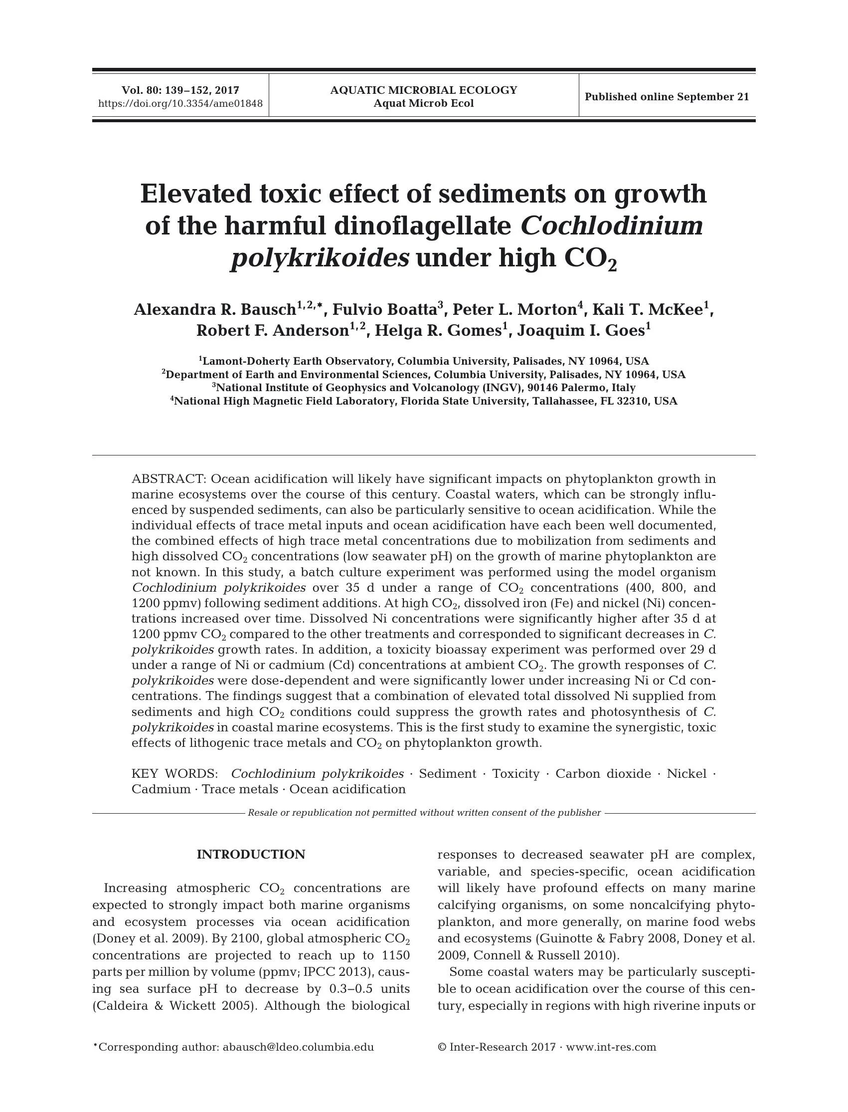 Ecological Studies | PDFElevated toxic effect of sediments on growth of the harmful dinoflagellate Cochlodinium polykrikoides under high CO2 (2017)