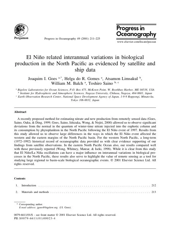 Eos, Transactions, American Geophysical Union | PDFEl Niño related interannual variations in biological production in the North Pacific as evidenced by satellite and ship data (2001)