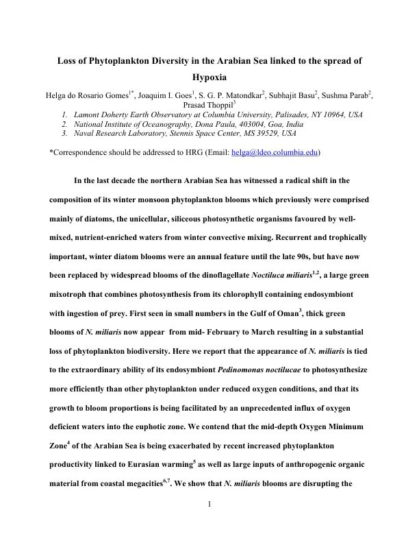 Journal of Plankton Research | PDFAn Ecosystem in Transition: The Emergence of Mixotrophy in the Arabian Sea (2016)