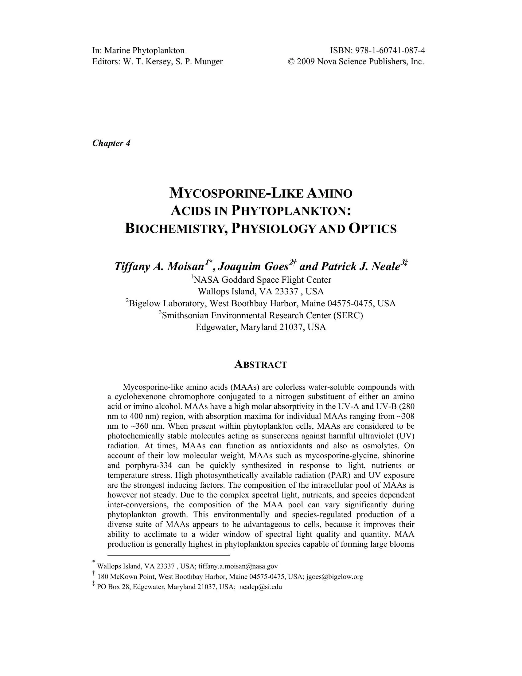 Remote Sensing of Environment | PDFMycosporine-like amino acids in phytoplankton: Biochemistry, Physiology and Optics (2009)
