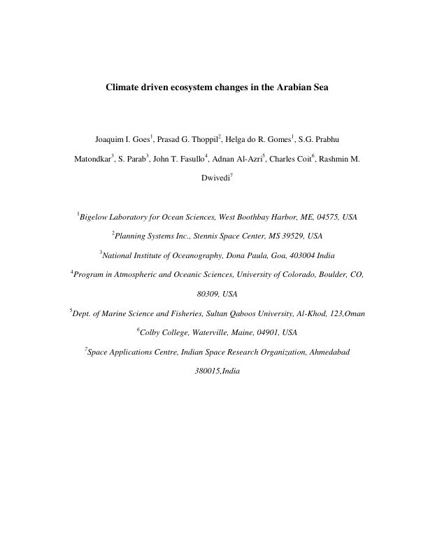 Joaquim I. Goes, Prasad G. Thoppil, Helga do R. Gomes, and John T. Fasullo